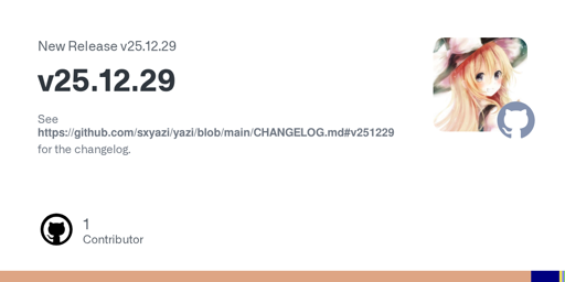 arrow-up113arrow-down1external-linkyazi v25.12.29 released (a terminal filemanager written in Rust)plus-squaregithub.comthingsiplay@beehaw.orgEnglish · 24 days agomessage-square0linkfedilink