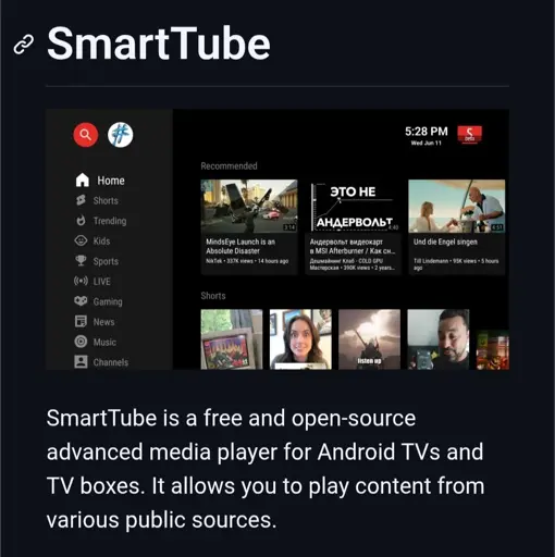 arrow-up1132arrow-down1imageSmartTube — an Open-Source Alternative to the Official YouTube App on Android TV (Security Update Included)lemmy.mlkhalido@sh.itjust.works to Open Source@lemmy.ml · 10 days agomessage-square11linkfedilink