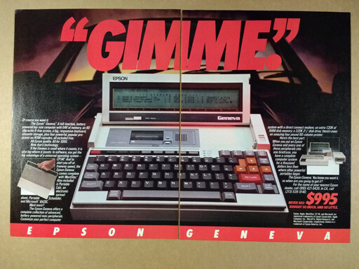 arrow-up14arrow-down1image[REPOST] GIMME. Epson PX-8 Geneva 1984 Adlemmy.todaytal@lemmy.today to CassetteFuturism @lemmy.worldEnglish · 7 months agomessage-square0linkfedilinkfile-text