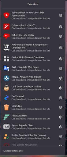 Hi there, I have been using Firefox since a long time with these extensions. Do you think if any of those are redundant? Why I ask this is that while using Outlook in Firefox, it’s consuming around 1.7 GB of RAM. I don’t think it should be using this much amount of RAM for just a single tab of Outlook. Edit: I already use uBlock Origin, but it’s not present in the attached pic.