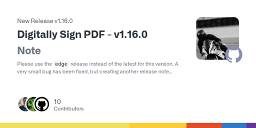 22·1 month agoIt’s actually coming up in next release (: You will be able to sign with PKCS12, PFX and PEM certificates. And also validate them