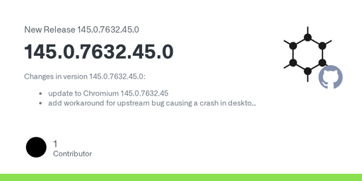 arrow-up15arrow-down1external-linkVanadium version 145.0.7632.45.0 releasedplus-squaregithub.comcm0002@literature.cafe to GrapheneOS@lemmy.sdf.org · 1 month agomessage-square0linkfedilink